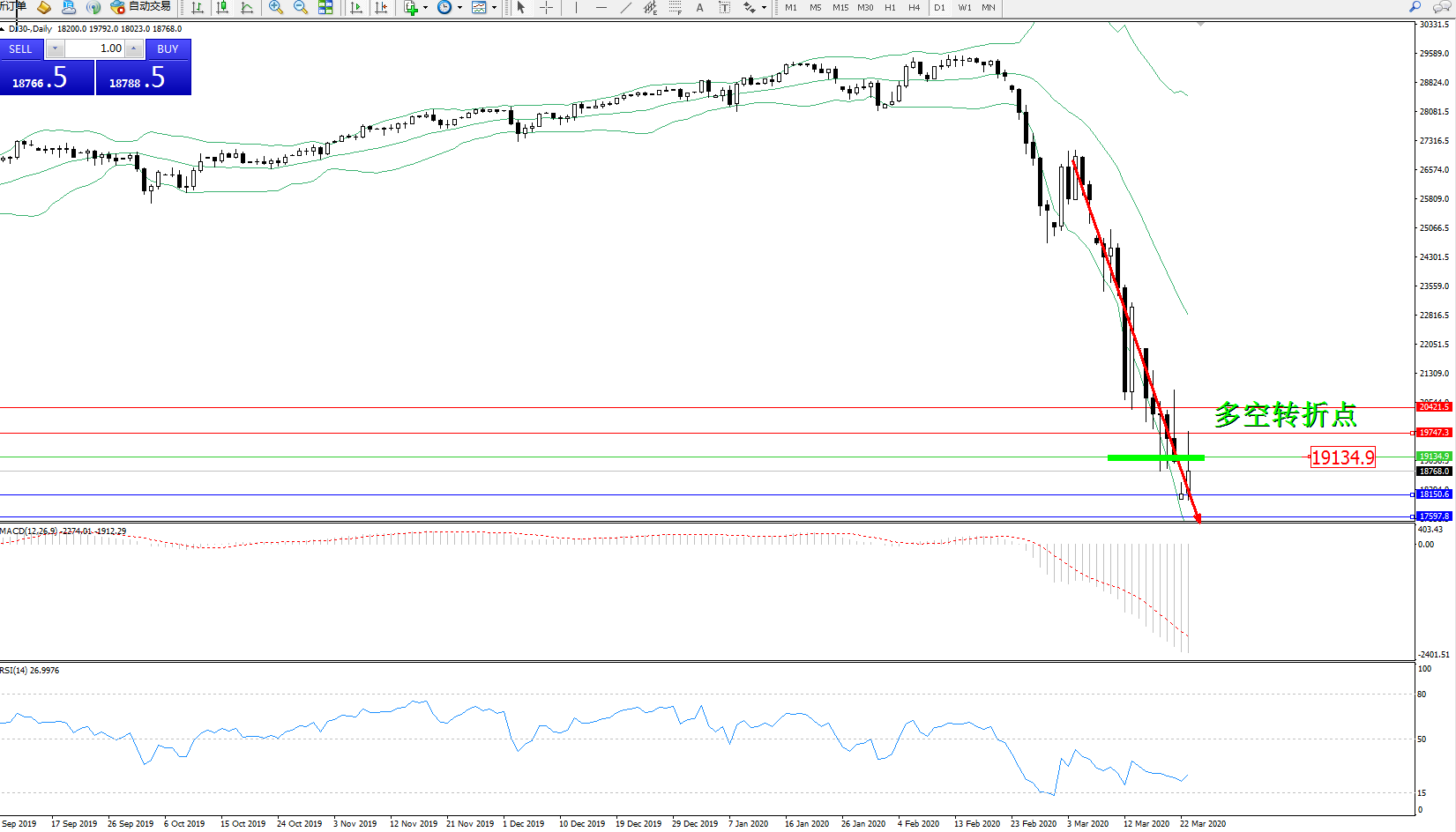 道琼斯指数3月23日(周一)收盘下跌582.00点,跌幅3.04%,报18591.93点。美国股市以下跌走势开始新一周的交易,道指跌近600点,投资者看不到抑制病毒影响的经济刺激方案在国会有什么进展。美联储宣布无限量宽松措施,消息宣布后,美元一度大幅下跌,但稍后逐渐大幅回升,因投资者指望政府出台刺激措施。之前国会议员未能在周末期间就刺激法案达成共识,参议院周一的投票也未能获得足够票数。道琼斯工业平均指数几乎完全回吐特朗普2016年11月8日当选以来的所有涨幅。在稳定风险资产方面,财政比美联储重要得多,话虽这么说,鉴于美联储更具创造性,它们可能变得越来越重要。将购买所有东西。美联储确实已经竭尽全力,最终市场意识到这需要财政反应,每次美联储向前迈出一大步,市场上都会有一种‘哦,不,这比任何人想象的都要糟糕’的反应”。