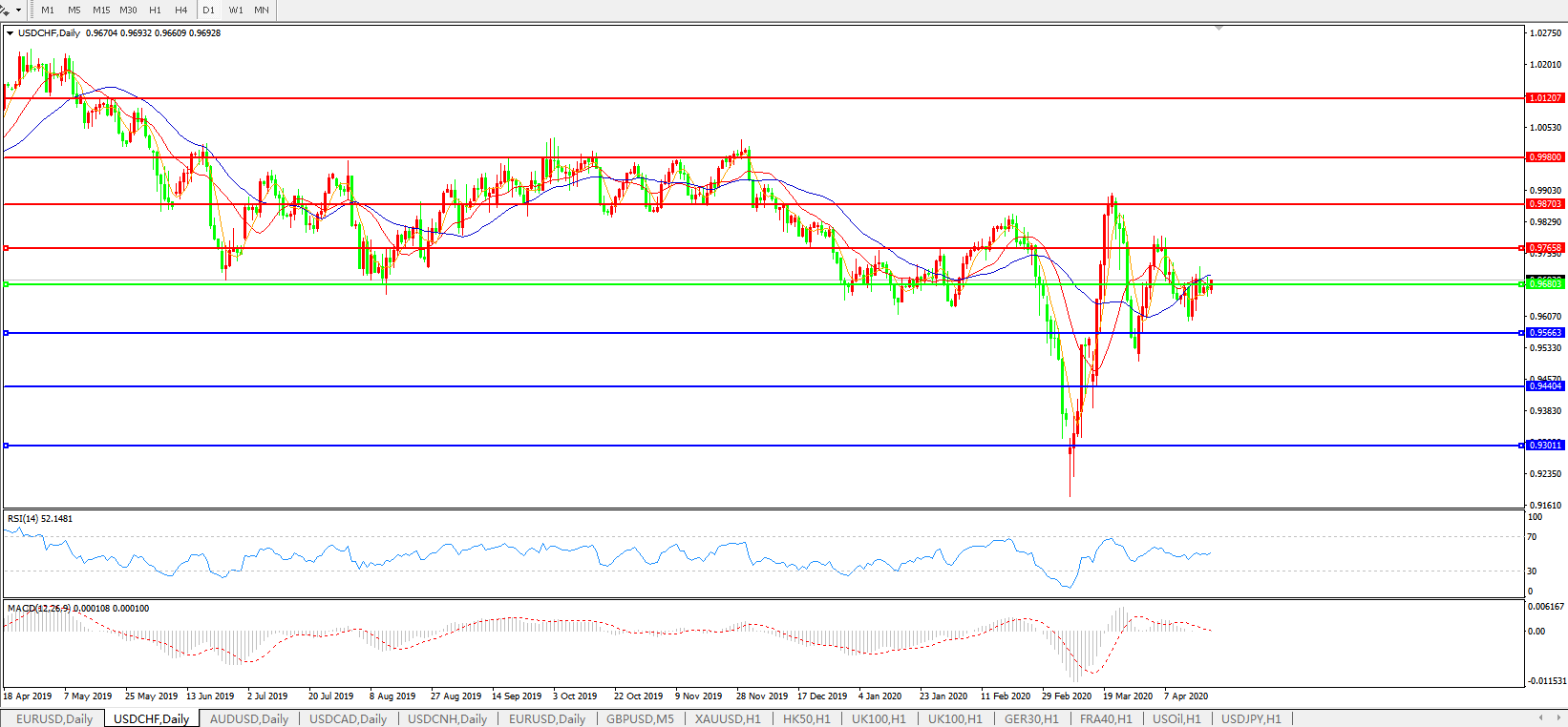 交易策略:0.9680下方看跌,目标0.9565、0.9440