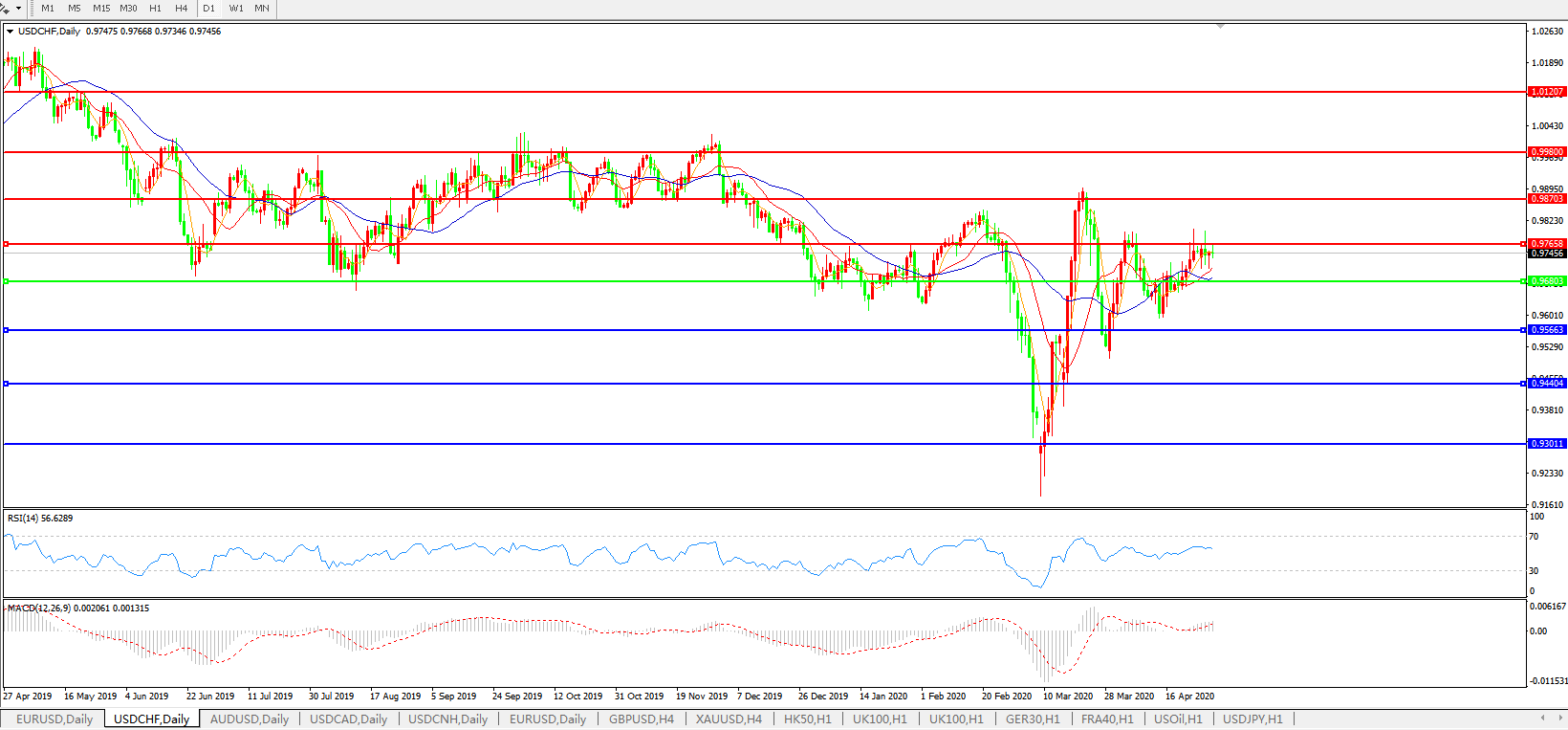 备选策略:0.9680下方看跌,目标0.9565、0.9440