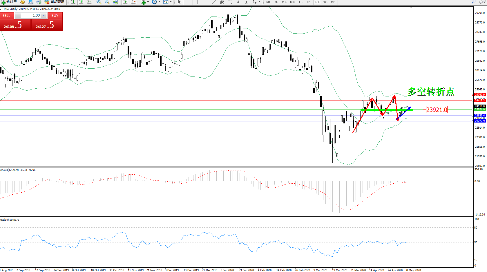 香港恒生指数58日(周五)收盘上涨249.54点,涨幅1.04%,报24230.17点;港股三大指数涨幅均超1%,;教育股与电池股走低明显,比亚迪电子跌3.36%。恒指国指成份股大多上涨,瑞声升4%,腾讯大涨2.7%,港交所延续昨日下跌行情,收跌1.46%;小米集团涨逾8%。小米公司(01810)举办超百家门店同期开业活动。小米之家客流约360万,虽比去年同期略有下滑,但销售额同比去年五一增长了13%,日均销售环比四月日均销售额全面翻番。自公共卫生事件后,小米零售在首个小长假迎来了线下经济的整体复苏。沪港通南向资金剩余426.06亿元,流出6.06亿元。深港通南向资金剩余395.75亿元,流入24.25亿元。受益于海外流动性危机缓解和部分欧洲国家疫情数据出现拐点,港股步入盘整筑底期,市场趋势性上涨还需要等待基本面数据回升。港股反弹至今已经有一个多月,未来继续上涨需要盈利支撑,然而基本面数据回升还需等待,加之美欧股市可能二次探底。