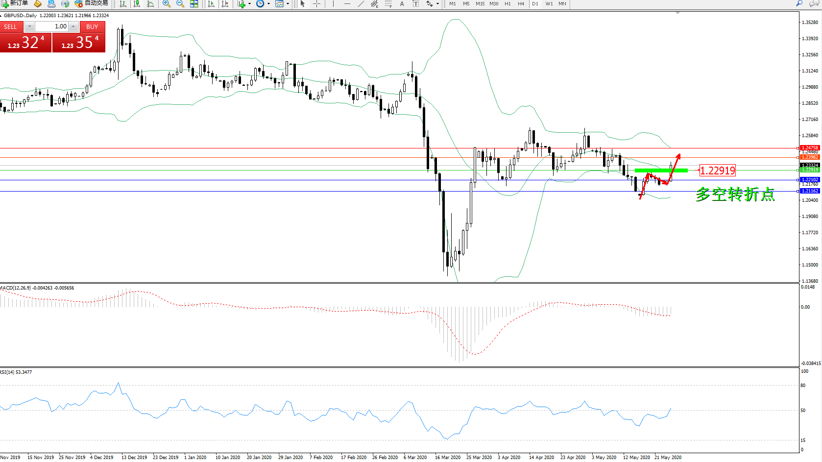 交易策略:1.22919上方看涨,目标1.239821.24758