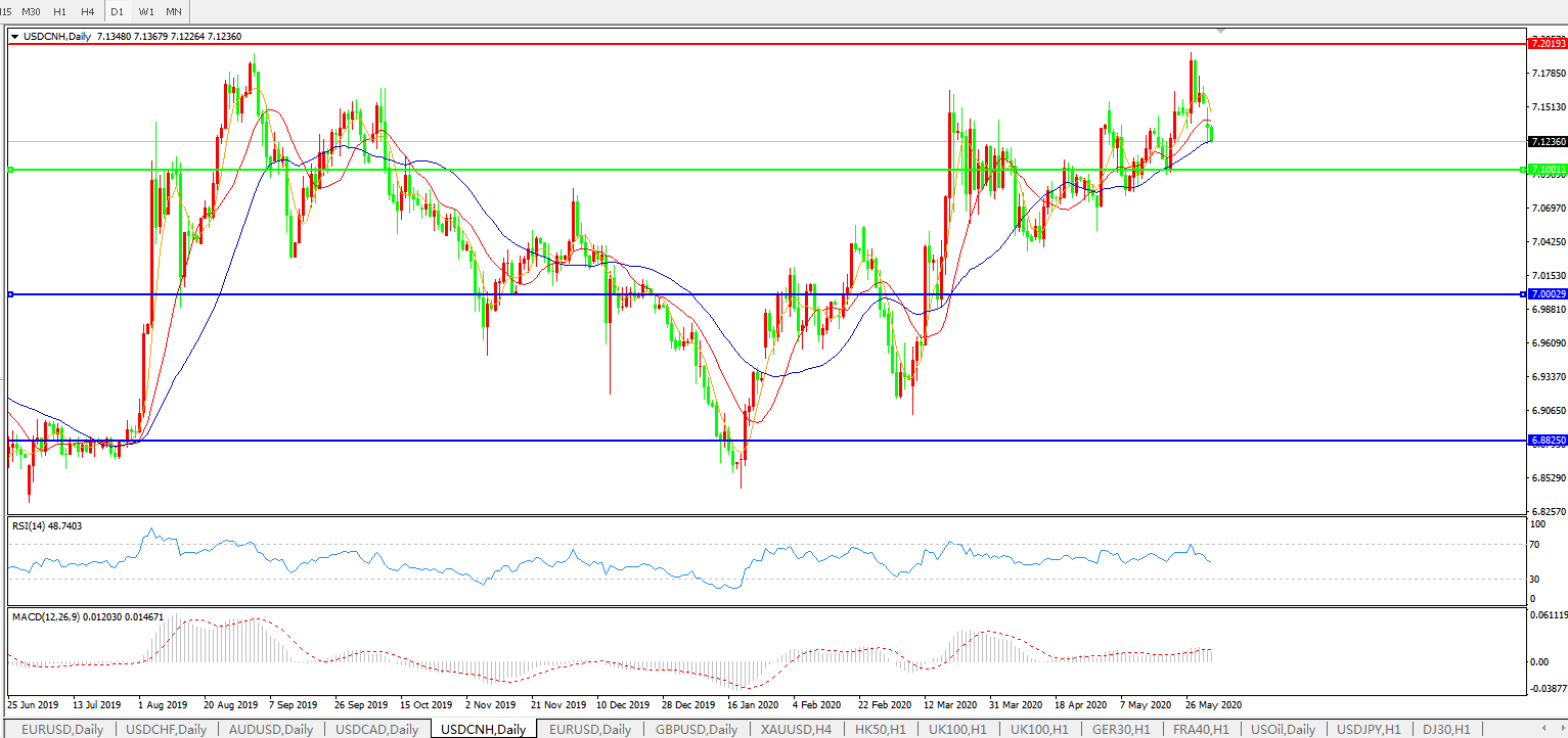 交易策略: 在7.1000之上,看涨,目标价位为7.2000,然后为7.3000。