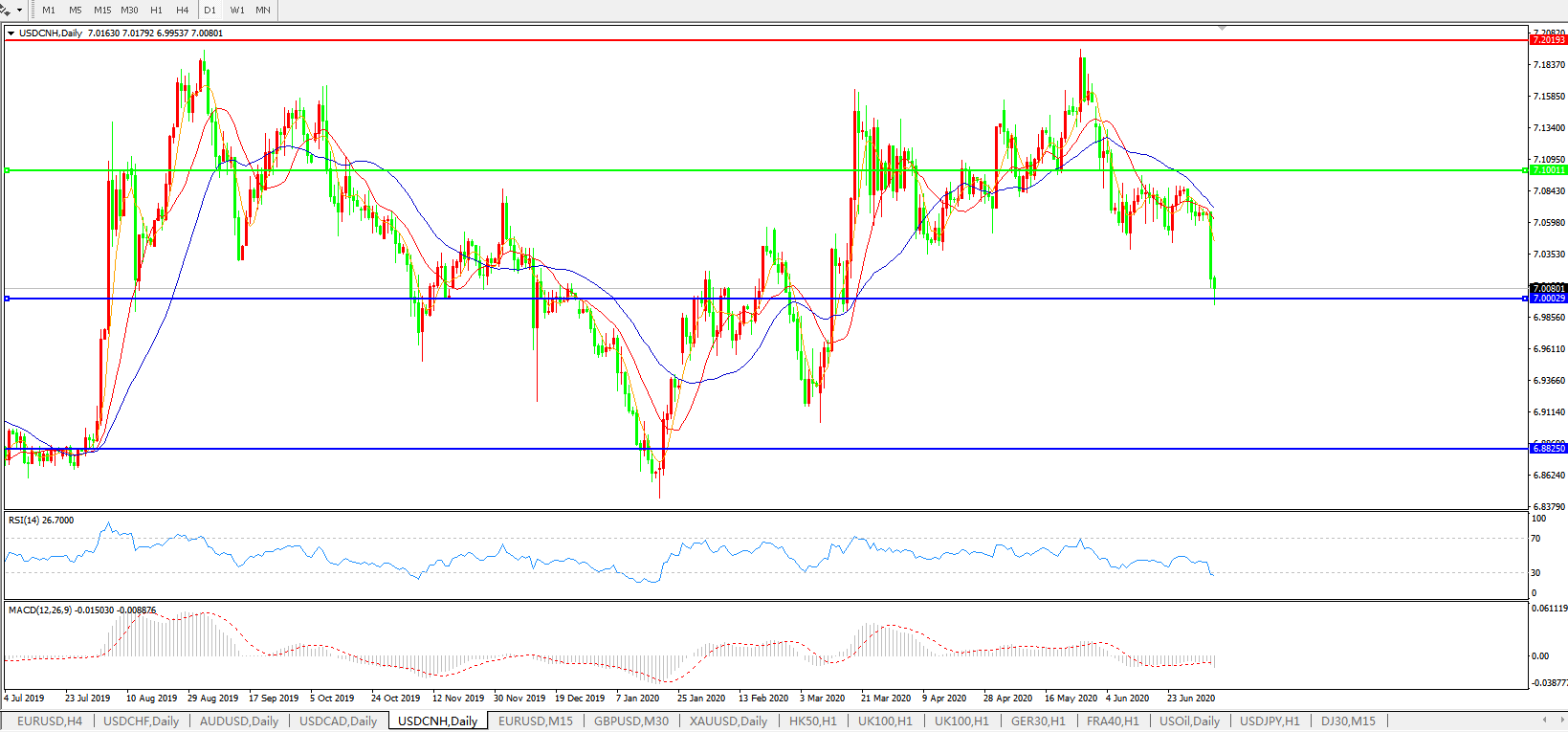 交易策略: 在7.1000之下,看跌,目标价位为7.0000,然后为6.8820。