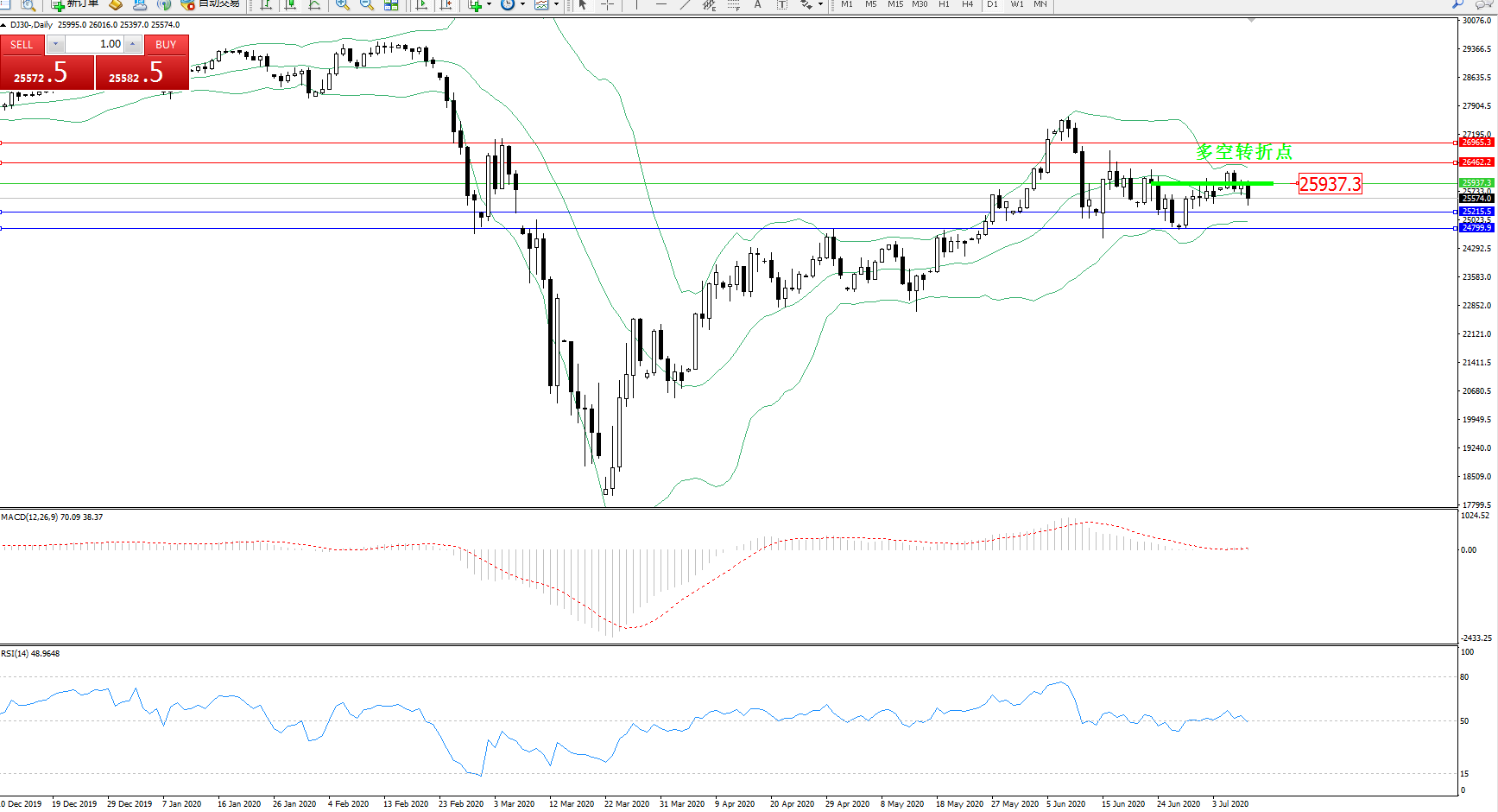道琼斯指数79日(周四)收盘下跌361.20点,跌幅1.39%,报25706.09点。美股三大指数收盘涨跌不一,资者担忧新冠病毒疫情复燃将破坏美国经济复苏。道琼斯工业平均指数下跌逾1.3%,受波音拖累;而大型科技股推动纳斯达克综合指数继续上涨。金融股在标普500指数行业中跌幅居前,富国银行准备从今年晚些时候开始裁员数千人。美国单日新增新冠病例首次超过6万,加州和佛罗里达州新增死亡病例创纪录;虽然一些乐观派押注财政和货币刺激政策将有助抵御疫情冲击,但也有人指出就业市场仍处险境。市场情绪明显转为负面,疫情担忧升温看来是最大的问题,鉴于亚洲的新冠病例数也在上升,市场“确实担心第二波疫情正在逼近,这将影响全球经济。