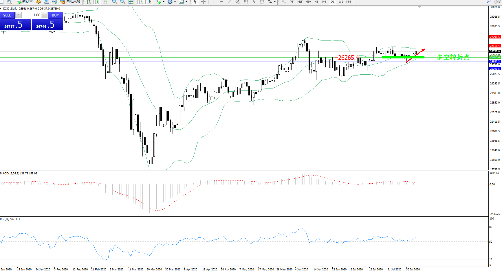 道琼斯指数8月4日(周二)收盘上涨164.10点,涨幅0.62%,报26828.47点。美股三大指数集体收涨,美国股市勉力收高,众议院议长佩洛西和美国财长姆努钦周二进入疫情纾困措施的新一轮谈判,投资者评估刺激法案的前景。标普500指数距离新冠疫情爆发前触及的高点不到3%,投资者密切关注新救助法案的谈判进展。虽然过去一周的谈判取得的少许进展激发了乐观情绪,但在某些最关键问题上依然缺乏解决方案。不过有迹象表明,两党议员之间在达成协议上面临的压力越来越大。美国股市面临财政刺激政策消退的风险,随着财政刺激悬崖将近,阳光带州的疫情反扑开始冲击经济活动,本周美国就业数据成为焦点。