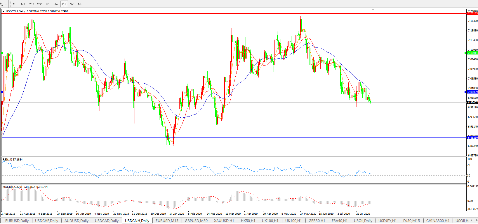 交易策略: 在7.1000之下,看跌,目标价位为7.0000,然后为6.8820。