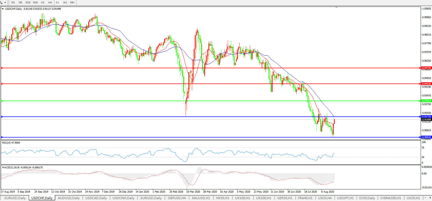 美元兑瑞郎USDCHF 日线图: