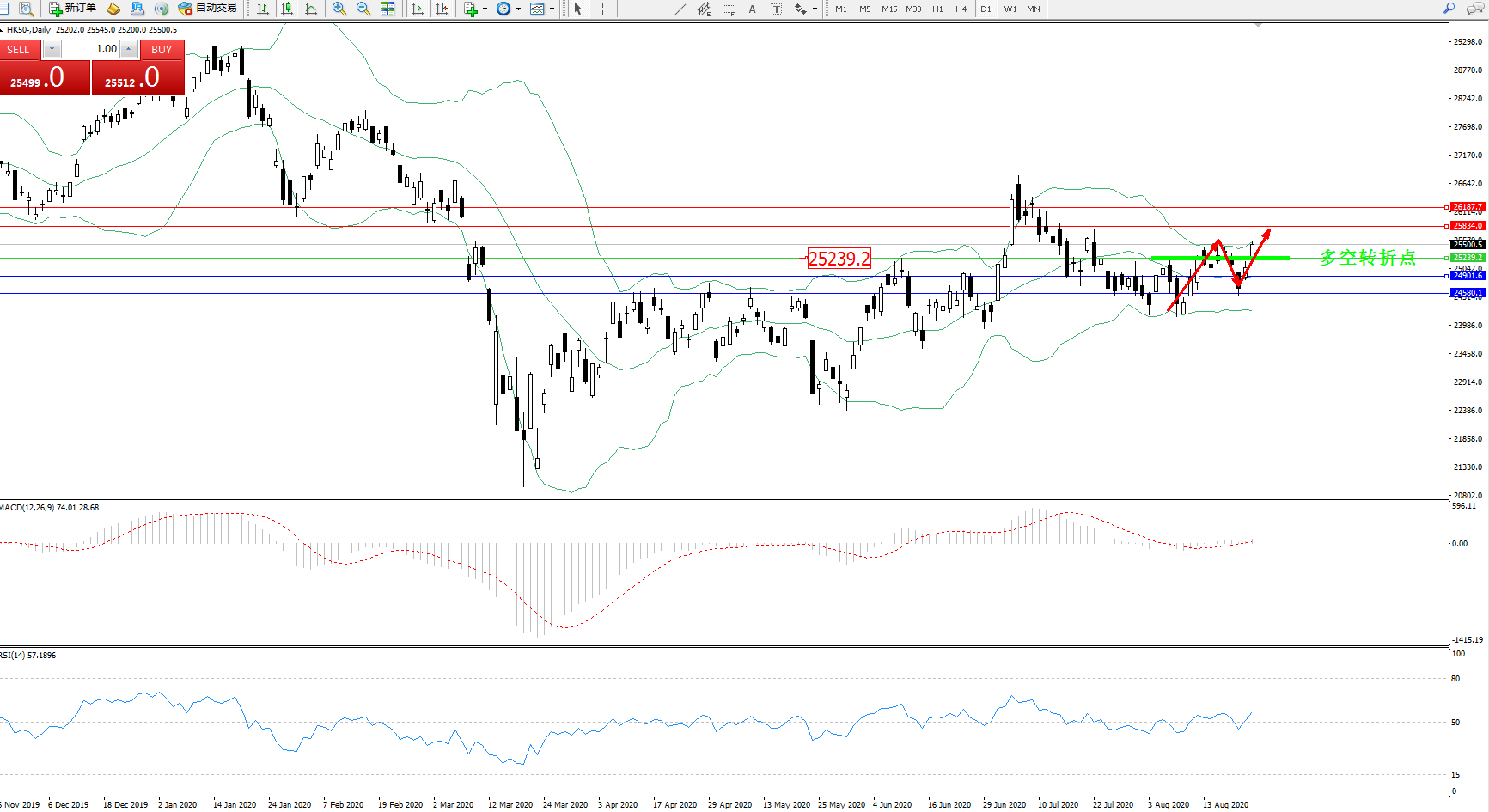香港恒生指数8月24日(周一)收盘上涨437.74点,涨幅1.74%,报25551.58点;港股三大指数均大幅收涨,OLED概念、电商及互联网涨幅居前;水泥股全日强势,华润水泥大涨超7%创新高;黄金股、体育用品、影视娱乐均现普涨行情;大型科技股表现亮眼,美团大涨8.4%创新高,阿里巴巴涨4.59%、京东涨4%均破顶,腾讯亦大涨近6%带动恒指上涨170点;今日南下资金净流入41.18亿港元,大市成交额为1401亿港元,阿里、腾讯、美团点评、京东集团等权重科技股全线大涨,带动港股恒生科技指数大涨2.25%,涨势明显强于恒指和国企指数。东集团涨3.96%,市值9300亿港元,位列港股第13。被称为“港版纳指”的恒生科技指数发布近一个月之际,有媒体称最少有3间主要的ETF发行商包括恒生、南方东英及华夏基金已向证监会提交产品申请,且最快本周内挂牌。