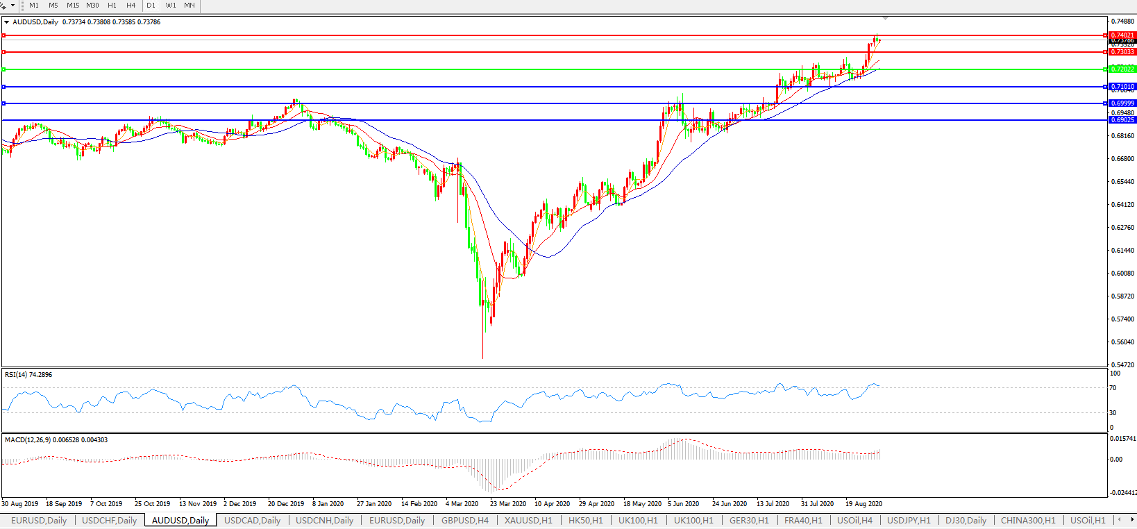 压制位:0.7300 0.7400