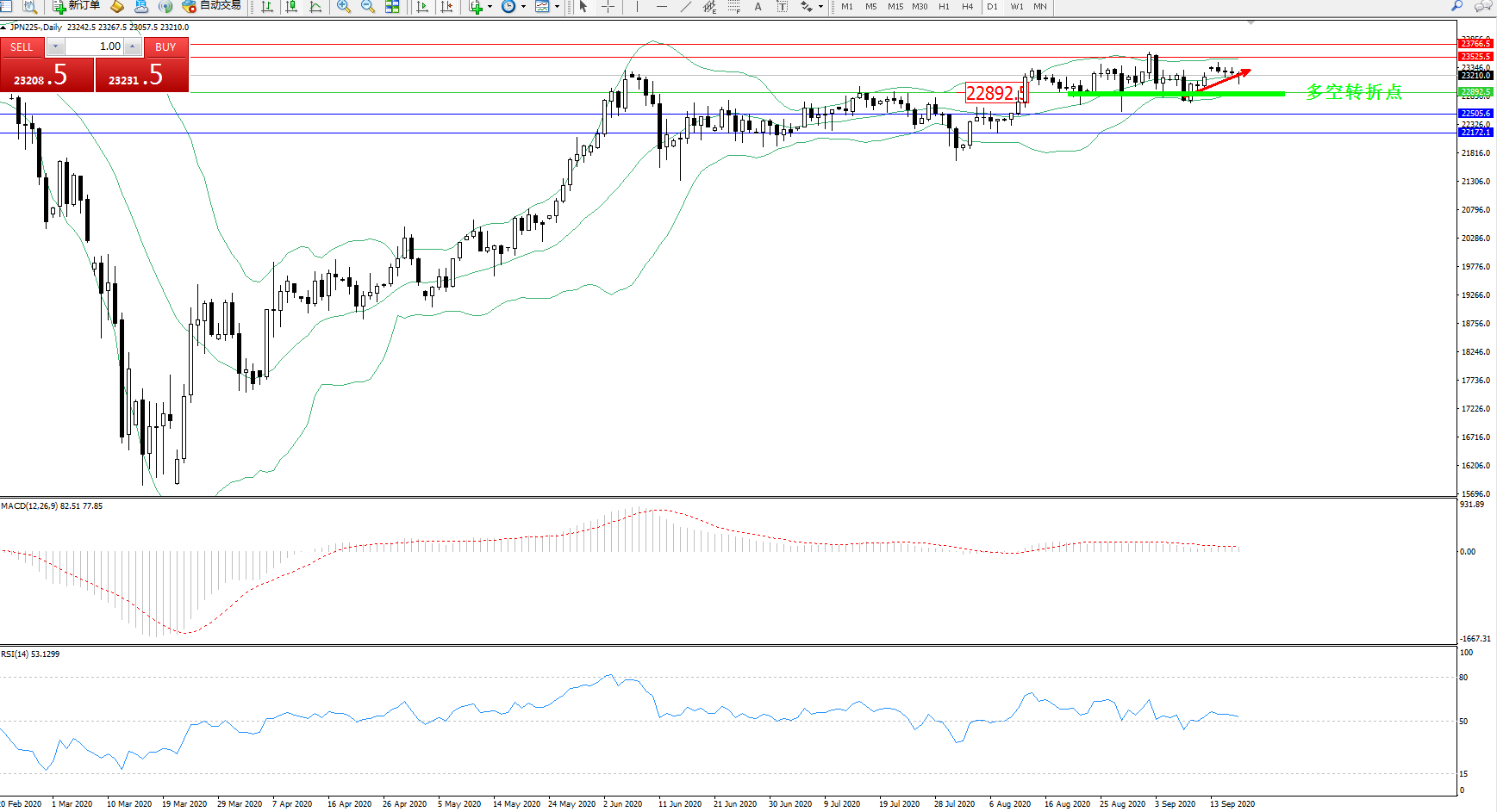 日经225指数9月17日(周四)收盘下跌160.03点,跌幅0.68%,报23315.50点。日本央行周四维持货币政策不变,并略微上调了对经济的看法,这暗示暂时不必扩大刺激政策以对抗新冠疫情。日本央行行长黑田东彦:我不会在我的任期中期辞职,当前情况不会使监管改革停滞;相信实现结构性改革是完全可能的,日本央行持有的ETF相对于日本市场的资产规模不算大,日本央行的ETF购买计划并未扭曲日本股市,并未考虑购买绿色债券,自2016年以来,就已经将平均通胀目标定为2%,正如美联储一样,不将2%通胀目标看作是上限。