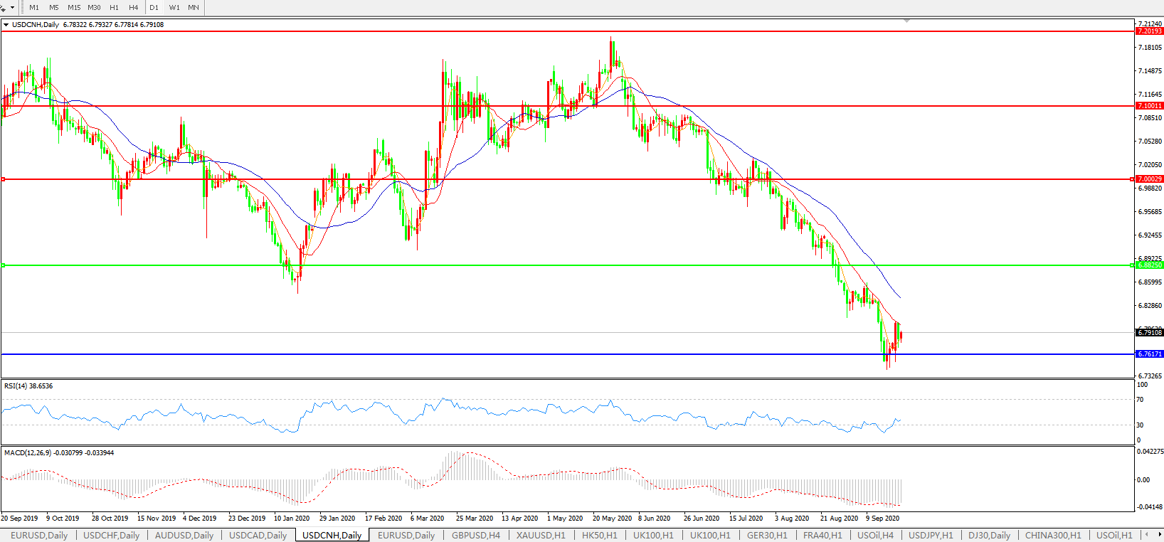 美元兑人民币USDCNH    日线图: