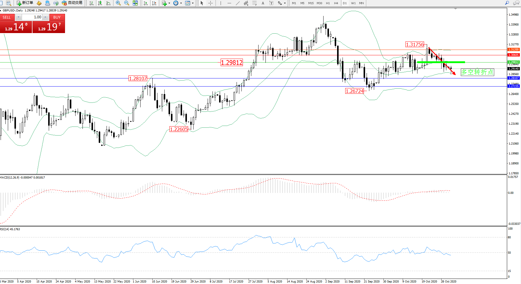 备选策略:1.29812上方看涨,目标1.30605、1.31200