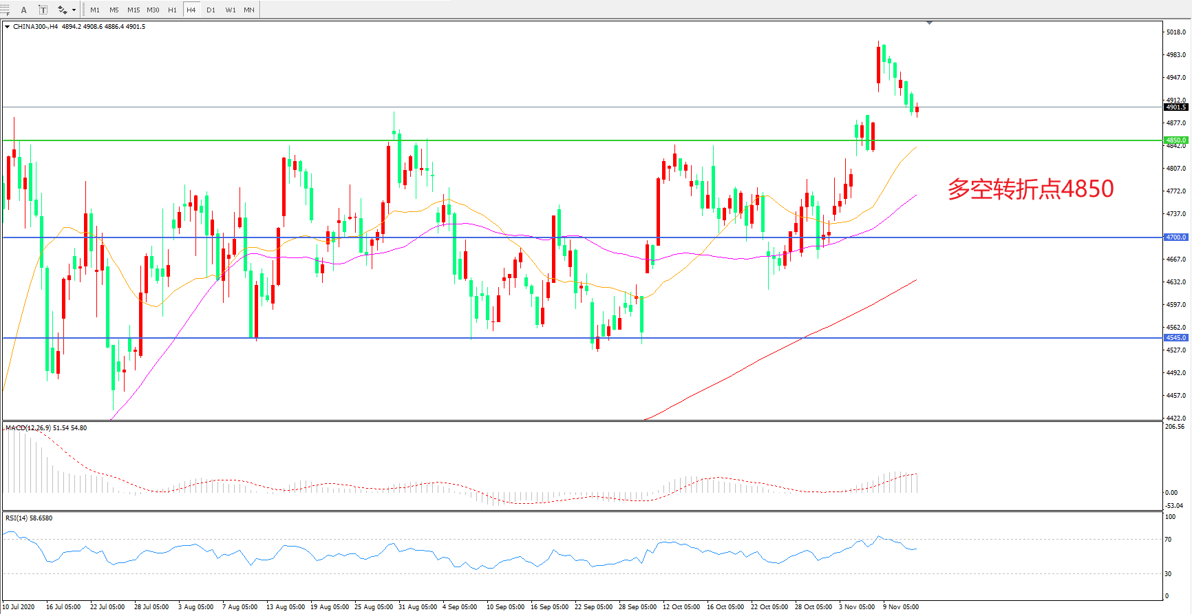 交易策略:在4850.00之上看涨,目标5000.00 5150.00