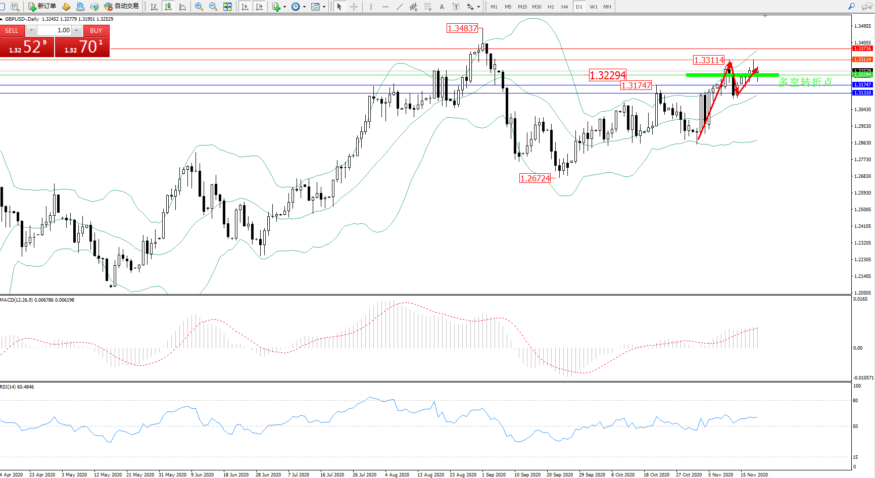 交易策略:1.32294上方看涨,目标1.33114、1.33716
