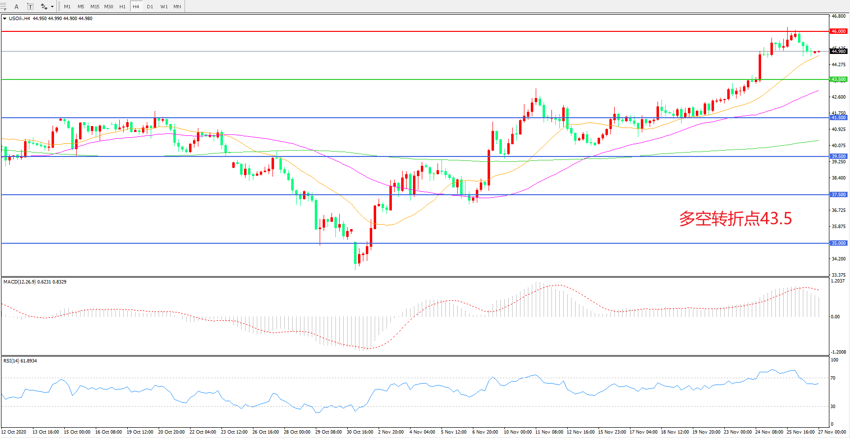 多空转折点:43.50