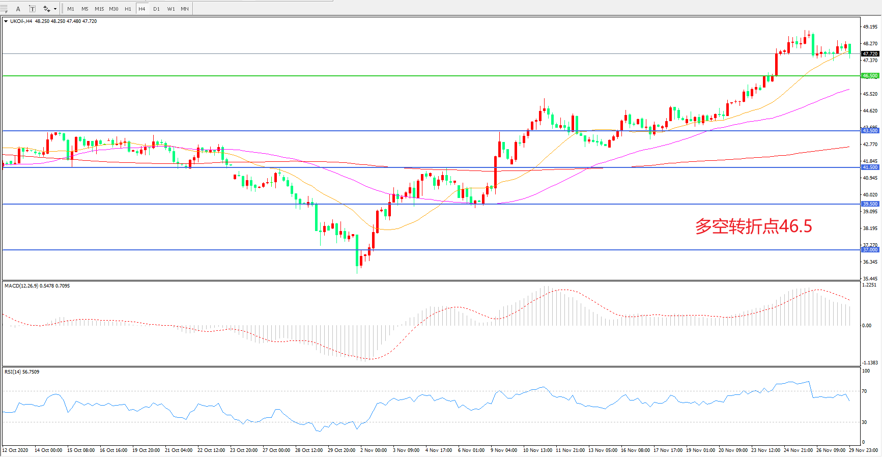 交易策略:  在46.50之上看涨,目标50.00      53.00
