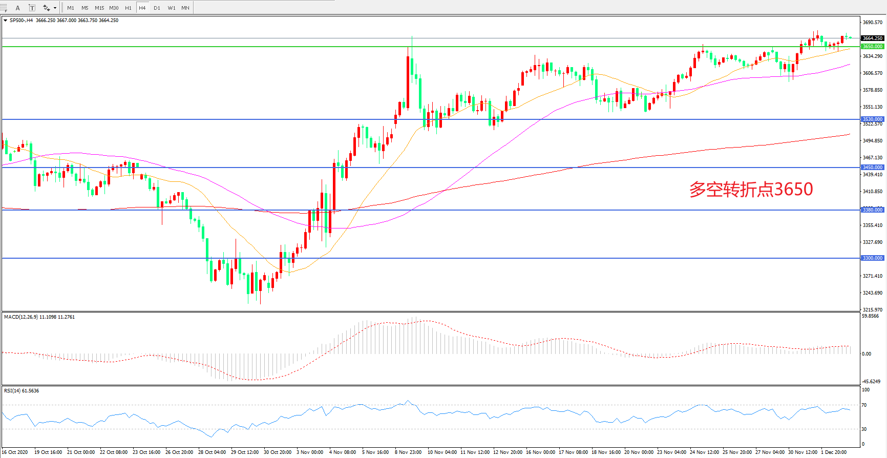 多空转折点:3650.00