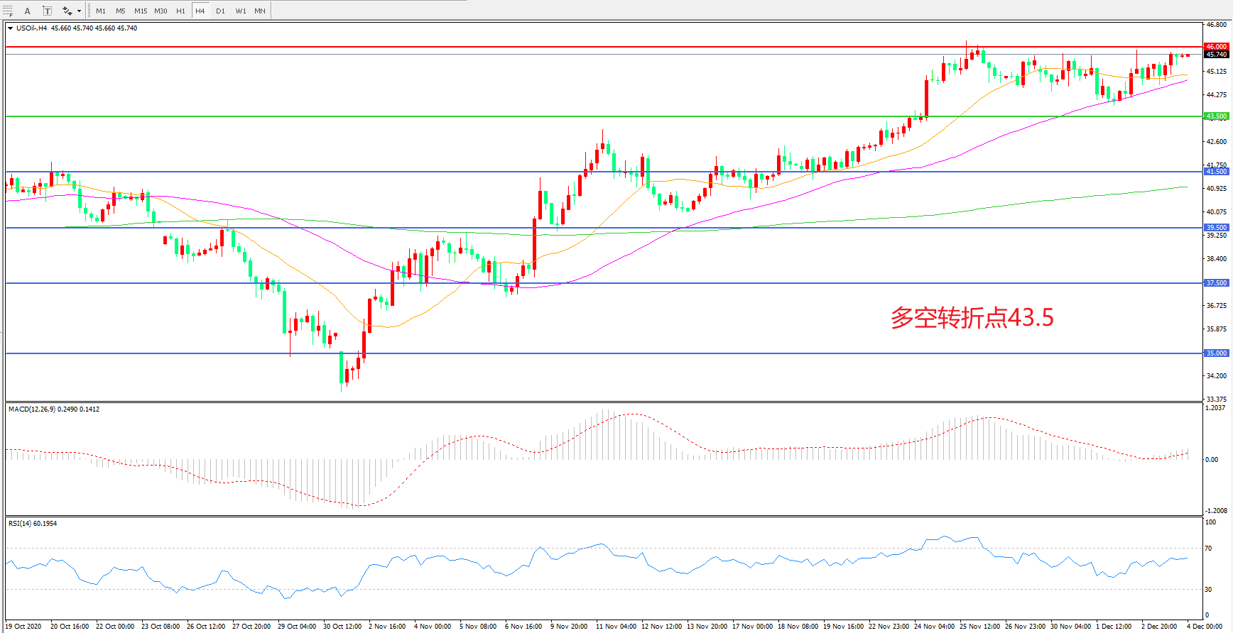 多空转折点:43.50