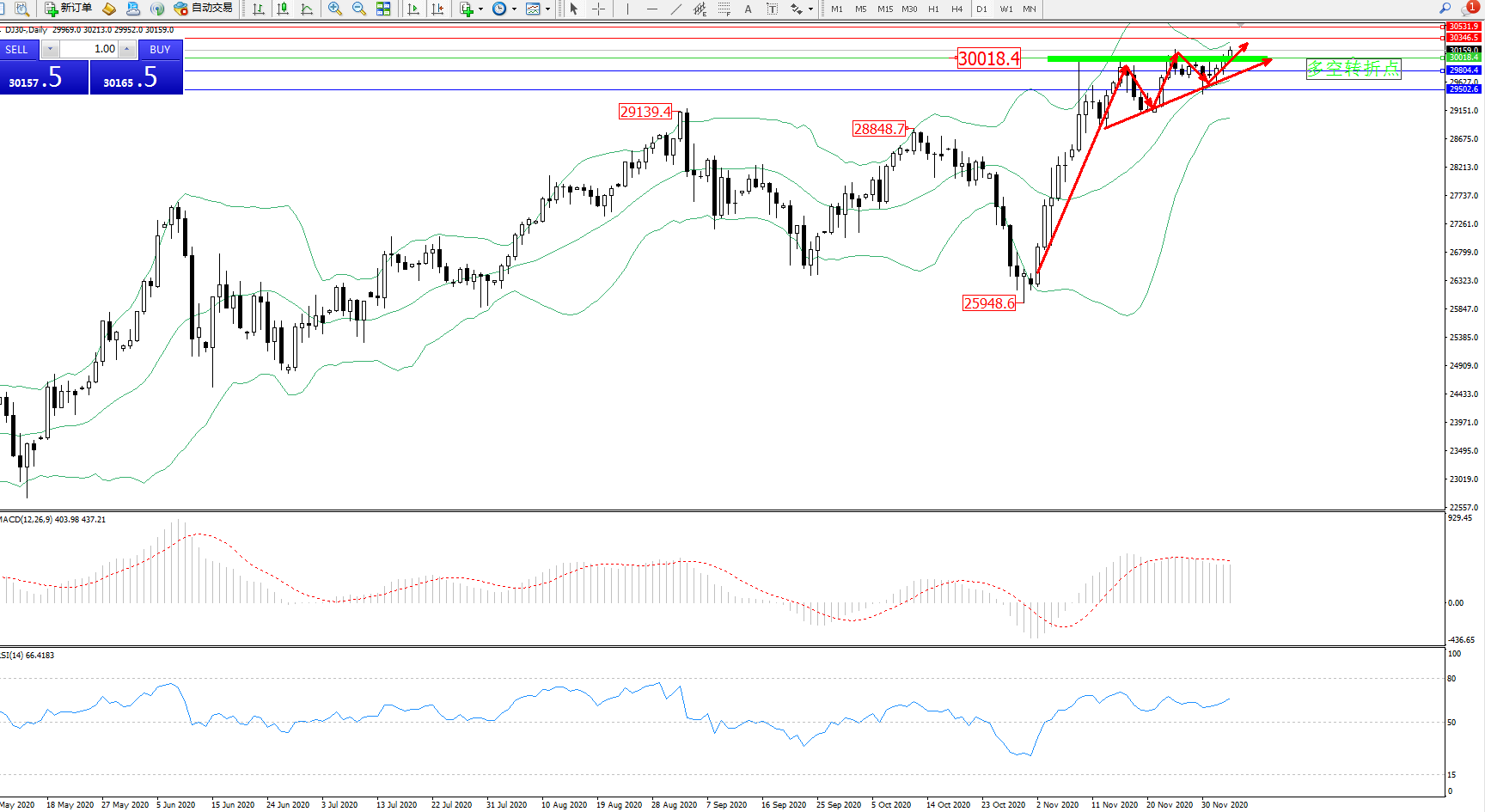 道琼斯指数DJ30—— 日K线图显示: