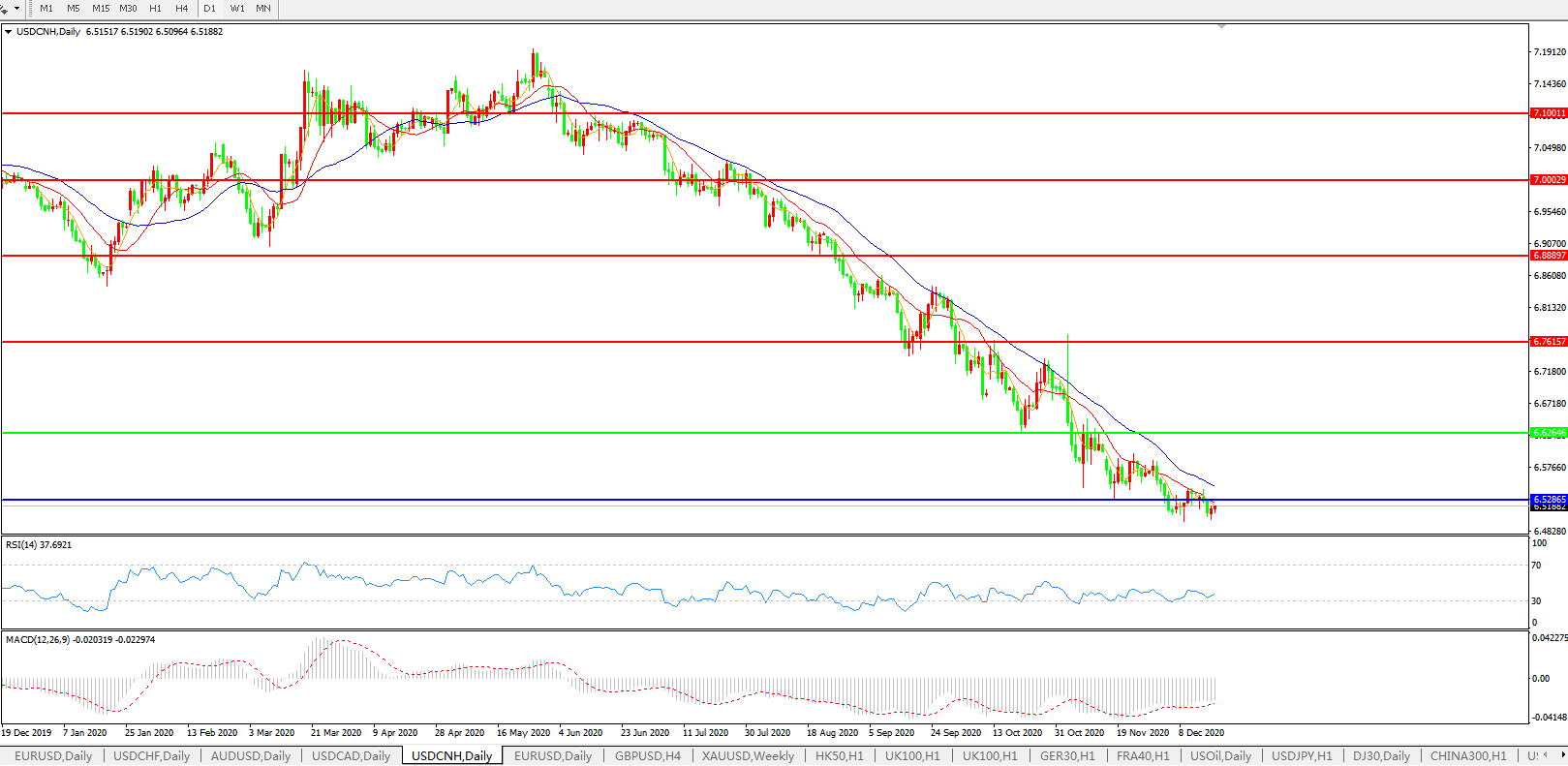 交易策略: 在6.6265之下,看跌,目标价位为6.5286,然后为6.3500。