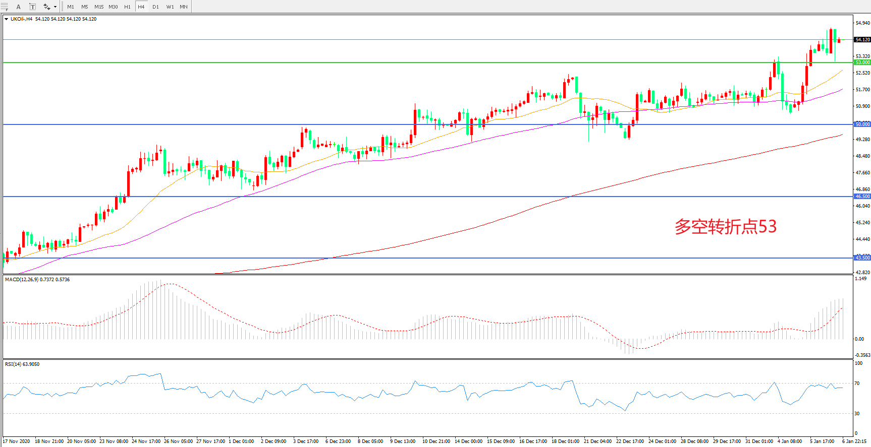 交易策略:  在53.00之上看涨,目标57.00      60.00