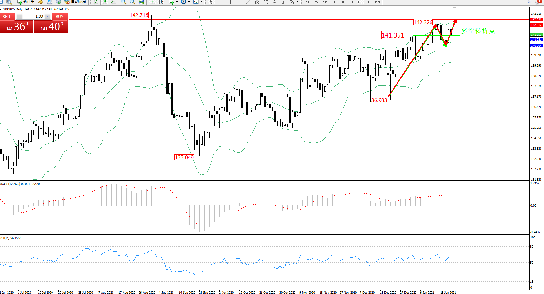 技术点评:多头动力延续布林带指标通道中上轨区间持续震荡上扬态势良好,高位抵达142.226位置节点后遇阻短暂回撤,处于中轨附近节点后再度拉升上扬,布林带指标上行趋势走势持续中,MACD指标处于0轴线上方多头区域维持整理平移中,RSI指标处于50均衡线上方窄幅整理徘徊中;