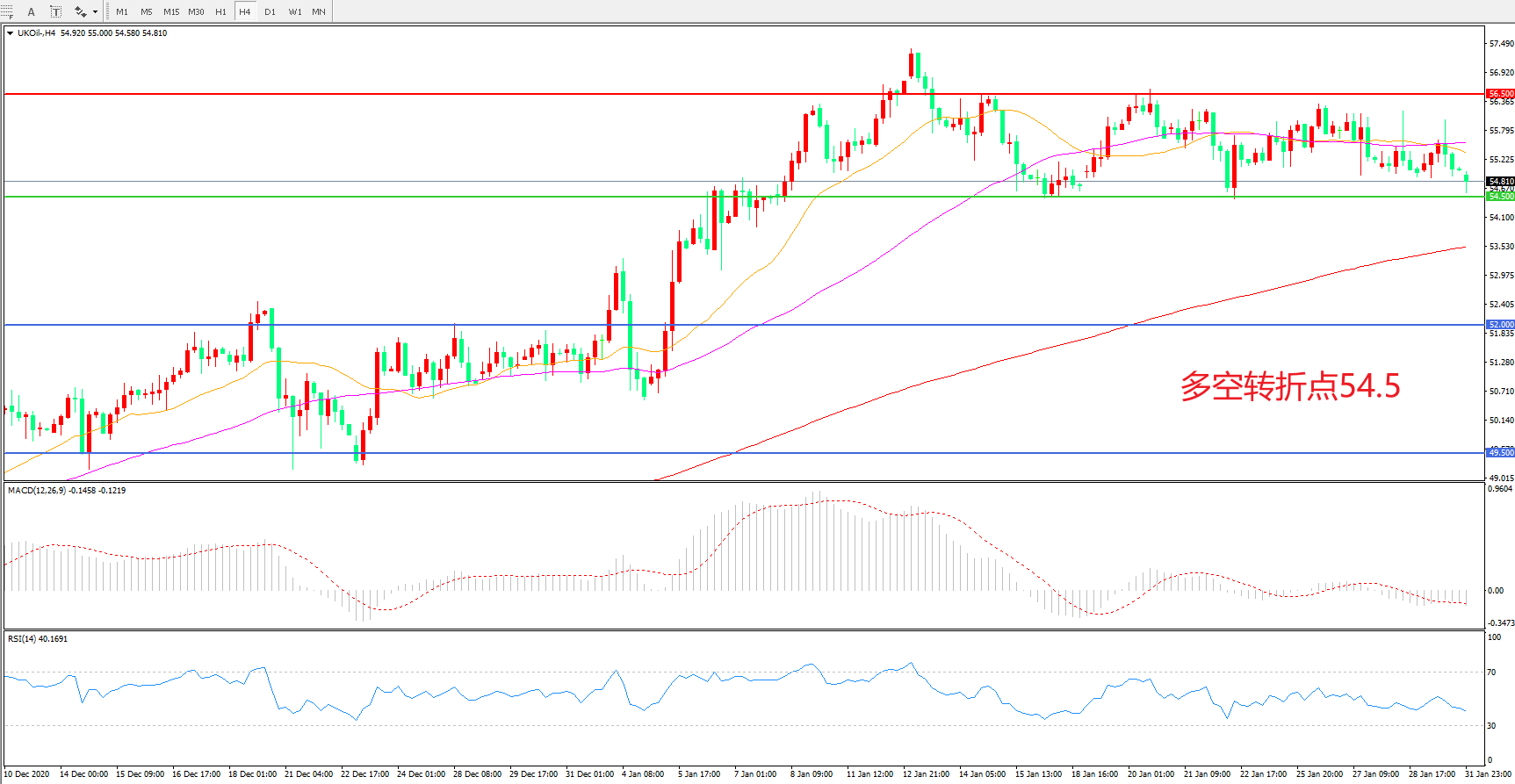 交易策略: 在54.50之上看涨,目标56.50 60.00