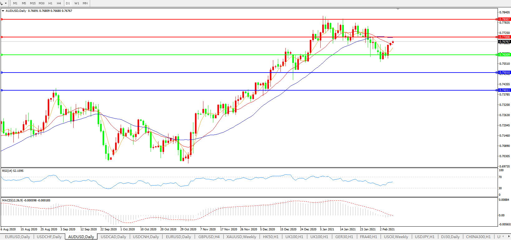 交易策略:0.7600上方看涨,目标0.7700、0.7800