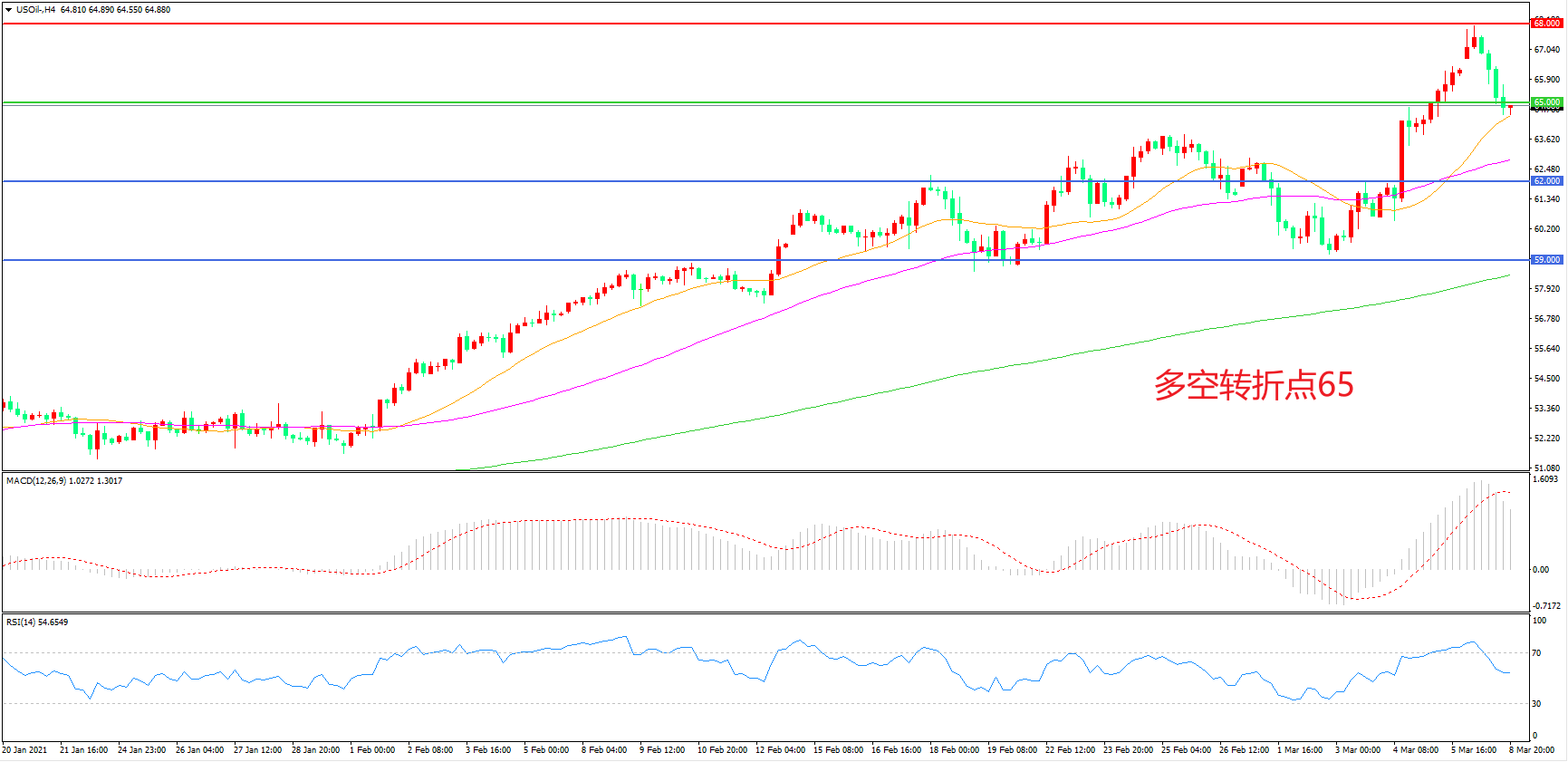 多空转折点:65.00