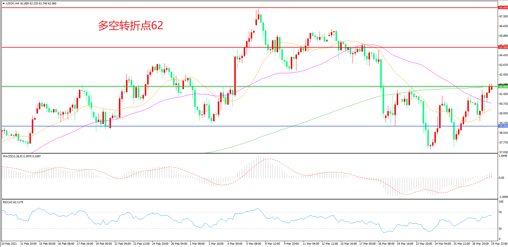 交易策略:在62.00之上看涨,目标65.00 68.00
