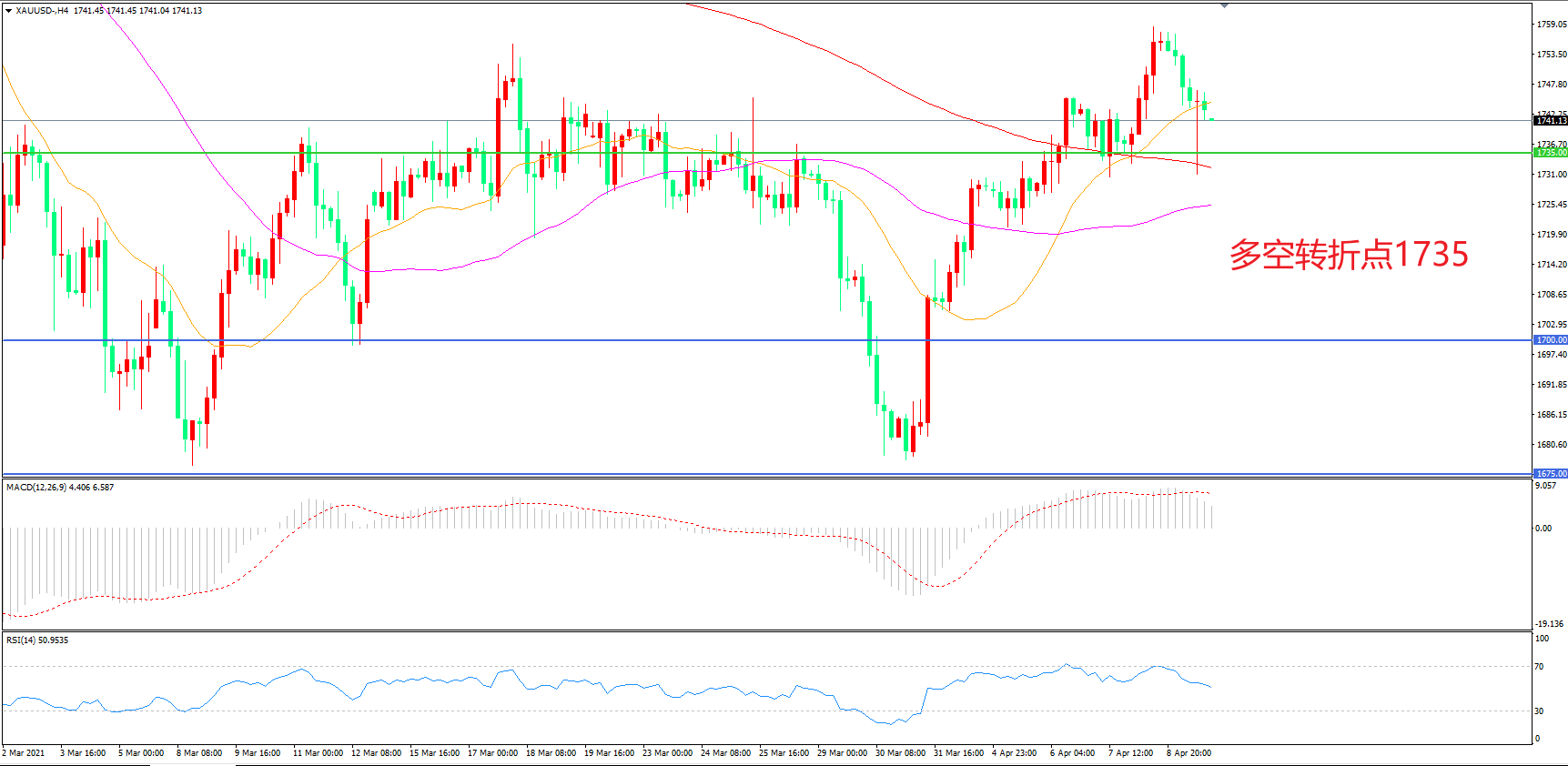 多空转折点:1735.00