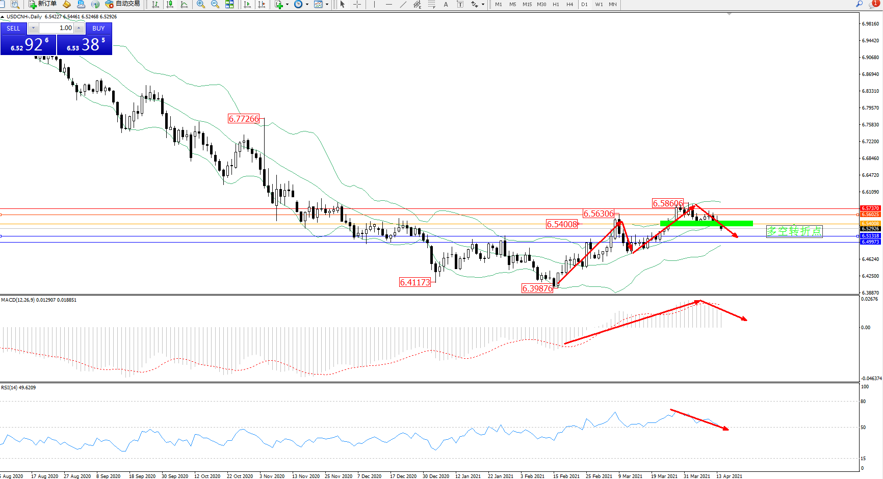 交易策略:6.54008下方看跌,目标6.51318、6.49973