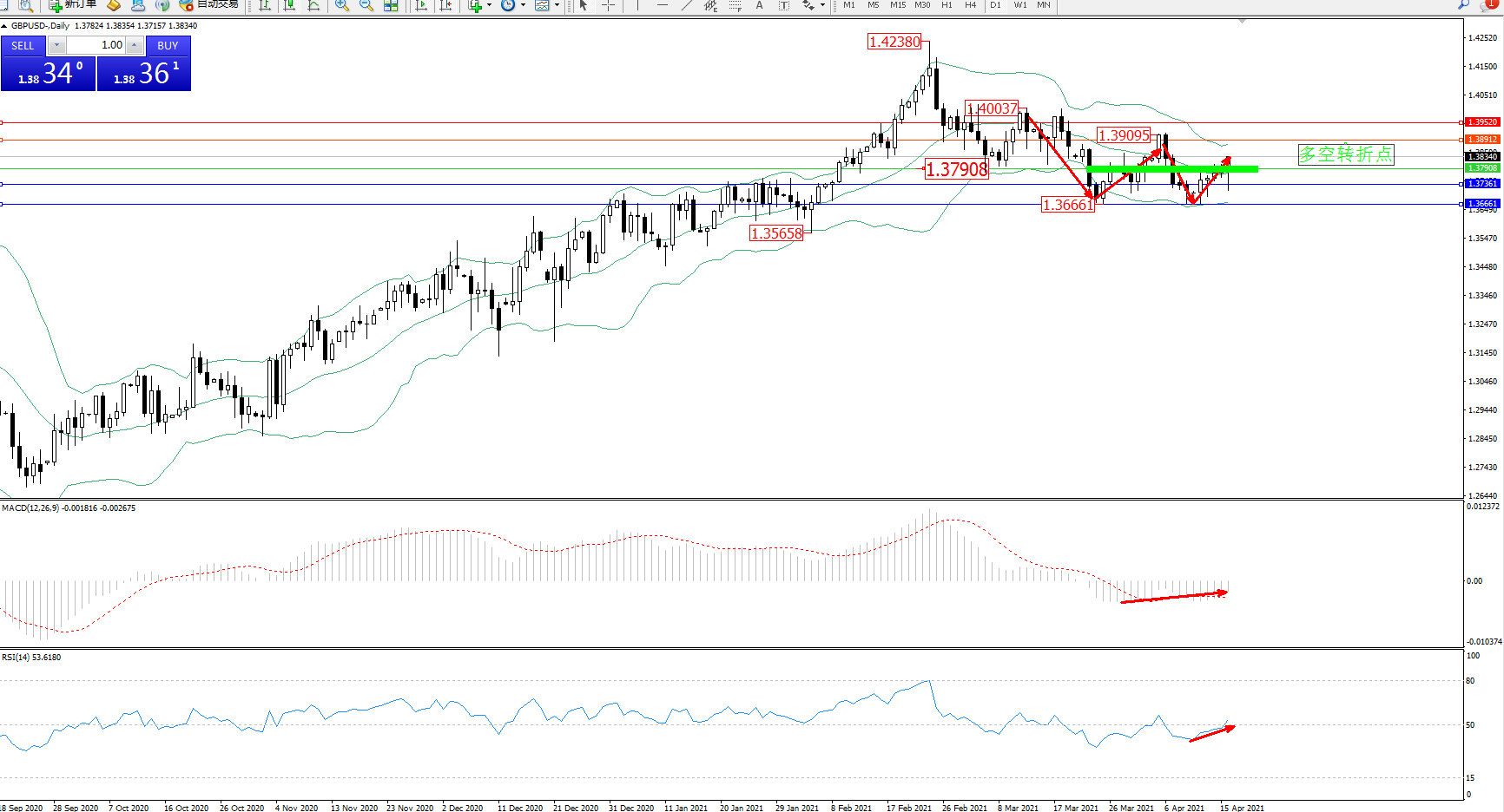 交易策略:1.37908上方看涨,目标1.38912、1.39520