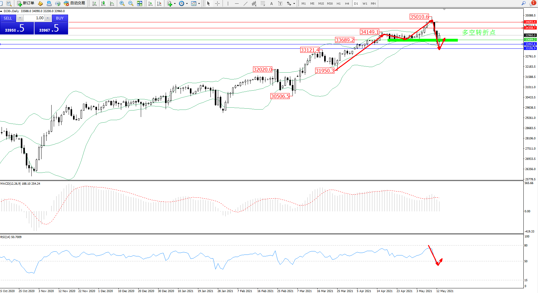 技术点评:多头动力延续布林带指标通道中上轨区间持续震荡上扬,高位抵达35010位置后遇阻回撤,急速下挫后破下轨附近节点后快速反转回升,纠结中下轨区间震荡,布林带指标呈张口走势后开始缓慢收口,MACD指标处于多头区域维持震荡后有向下移动迹象;RSI指标处于多头区域高位急速下挫,破50均衡线进入空头区域反转回升中;