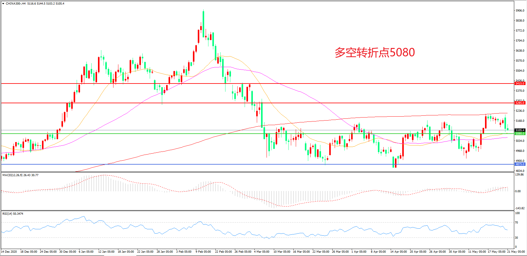 4小时图看,沪深300延续高位整理,区间震荡形态明显,200均线成为上方阻力,55周期均线成为下方支撑,MACD红柱增加,RSI指标走平,日内延续震荡概率较大。