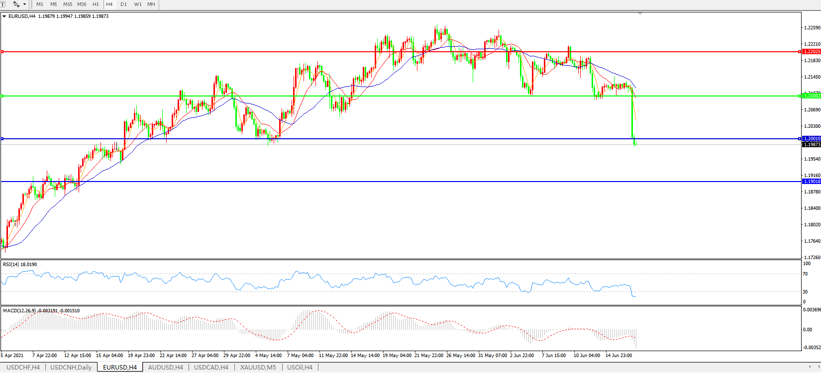 欧元兑美元EURUSD 4小时图: