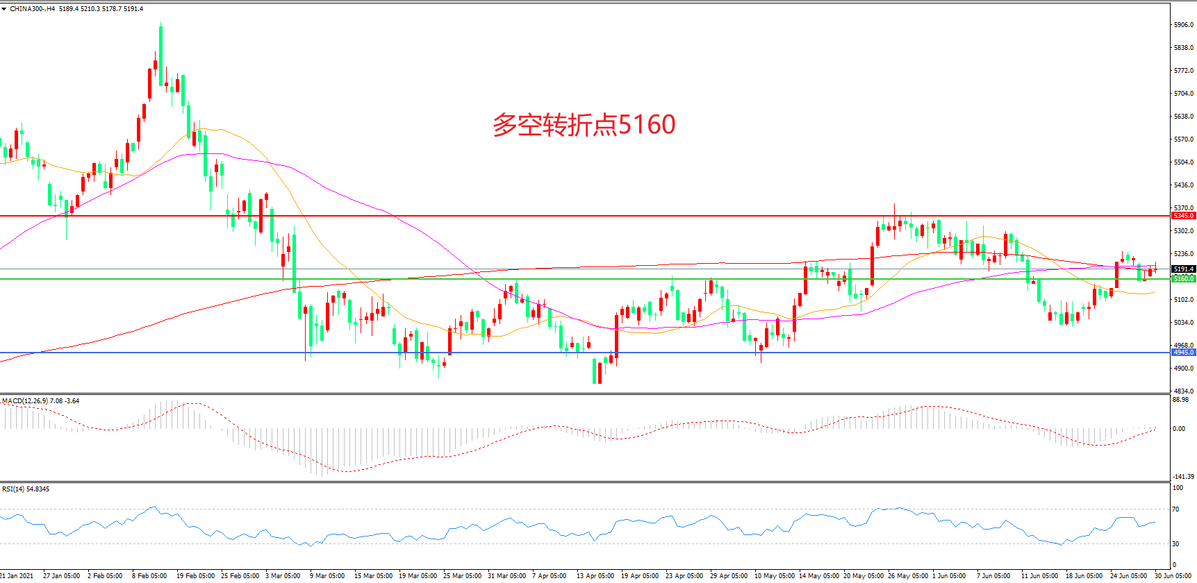 4小时图看,沪深300延续低位震荡形态,整体波幅不大,均线系统逐渐走平,5160成为多空分水岭,MACD绿柱缩短,RSI指标走平,日内震荡上行概率较大。