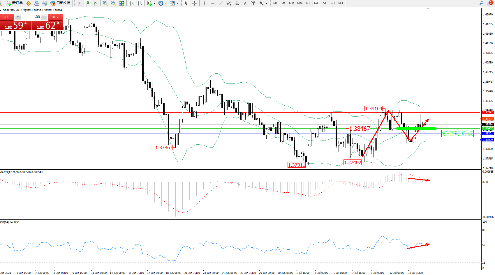 交易策略:1.38467上方看涨,目标1.38761、1.38972