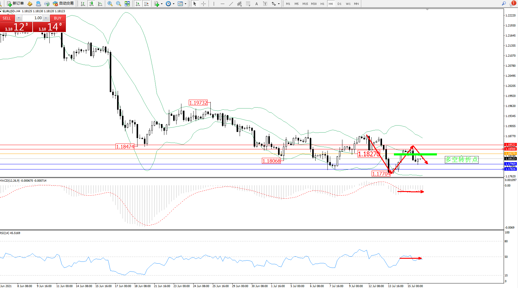 交易策略:1.18270下方看跌,目标1.17969、1.17826