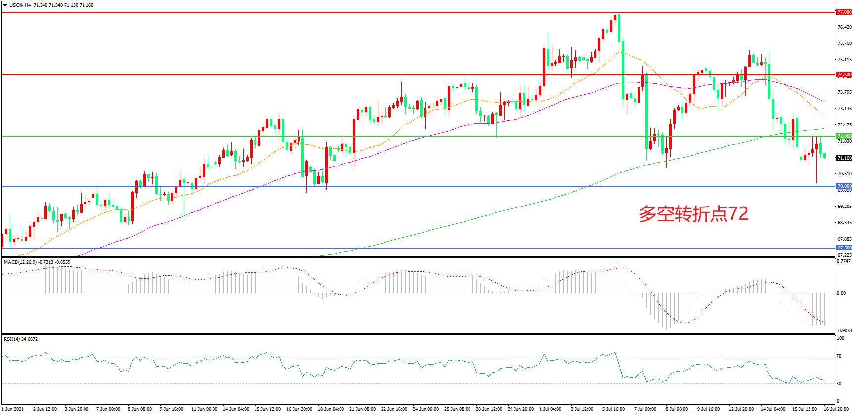 交易策略:在72.00之下看跌,目标70.00 67.50