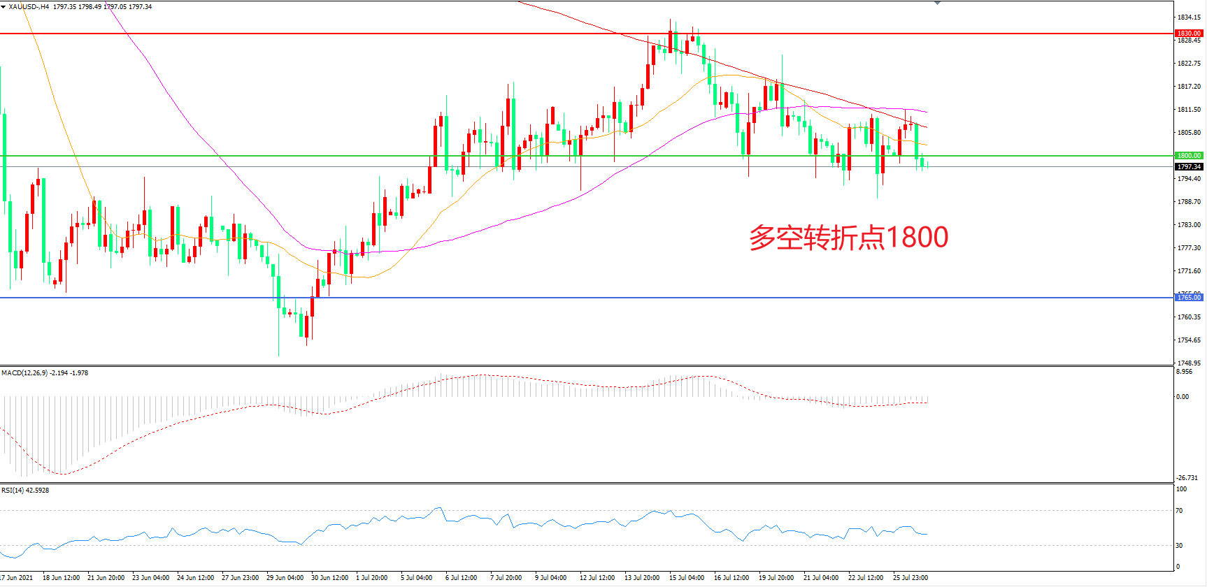 备选策略:在1800.00之下看跌,目标1760.00        1730.00