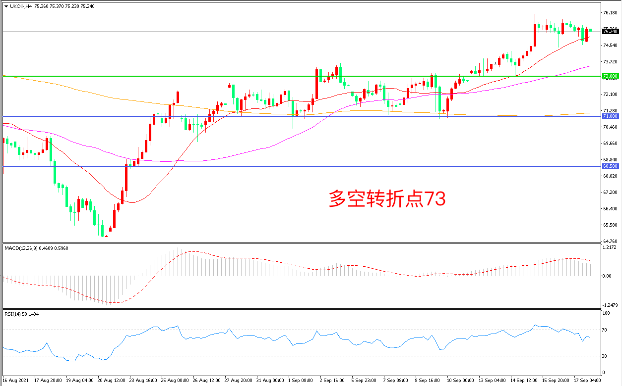 交易策略:在73.00之上看涨,目标75.00               78.00
