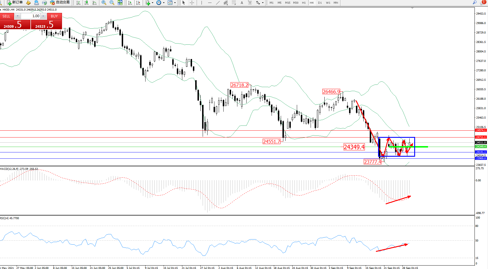 香港恒生指数9月29日(周三)收盘上涨163.11点,涨幅0.67%,报24663.5点;港股早盘大跌,午后三大指数持续回升,恒生科技指数跌0.84%报6179点。银行股、保险股、蓝筹地产股助力大市上涨,友邦保险、工商银行、中银香港等涨超2%;恒大概念股全线大反弹,恒大汽车暴涨逾44%,中国恒大大涨15%;内房股、物管股、猪肉概念股、体育用品股普遍下跌。大型科技股京东、阿里巴巴、快手、百度、网易皆跌超1%;纸业股领跌,电力、煤炭、石油等能源股全天表现低迷。今日大市成交额为1235亿港元。据央视,因应香港特区政府“来港易”计划,中华人民共和国出入境管理局决定在广东省试行恢复内地居民办理赴香港商务签注,为赴港从事商务活动人员提供出入境便利。自10月11日起,广东省内企业机构工作人员及个体工商户经营者赴香港从事商务活动的,可向广东省公安机关出入境管理部门申请办理赴香港商务签注,疫情中、高风险地区及申请前14天内有疫情中、高风险地区旅居史的人员除外。持商务签注人员应通过香港“来港易”计划前往香港,并自觉严格遵守相关主管部门关于防疫管理的规定要求。