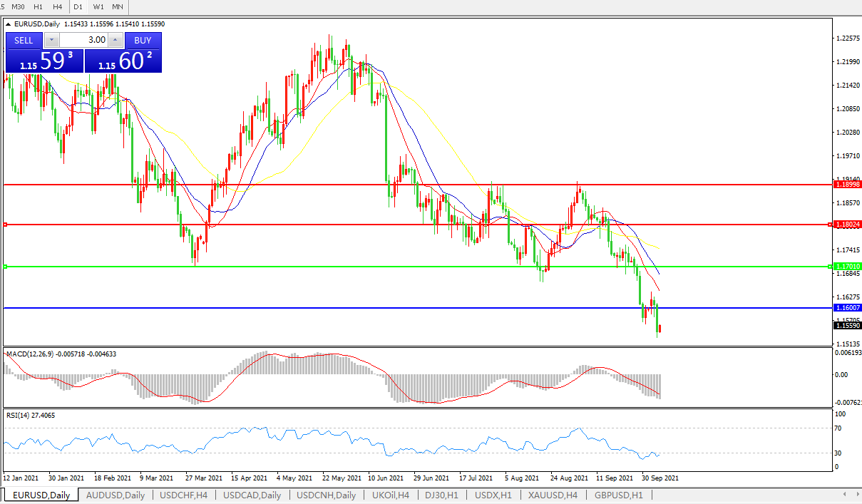 欧元兑美元下跌0.36%至1.1556,盘中触及2020年7月来最低;实钱机构和企业在卖出欧元;欧元的1年期隐含波动率升至一个月最高水平。