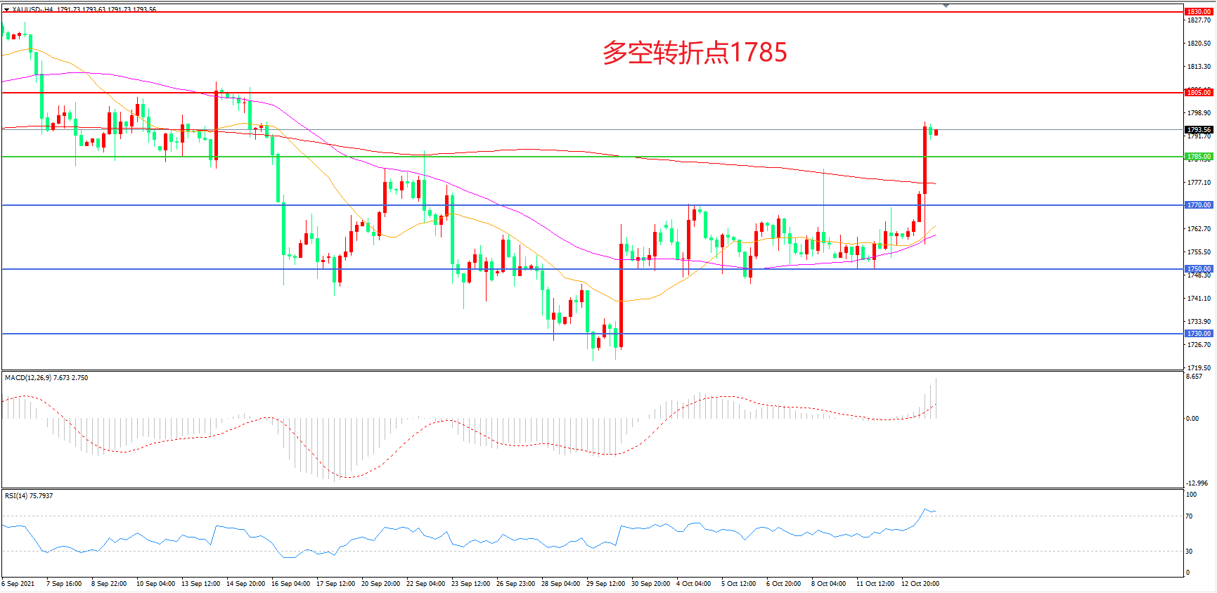 交易策略:在1785.00之上看涨,目标1805.00       1830.00