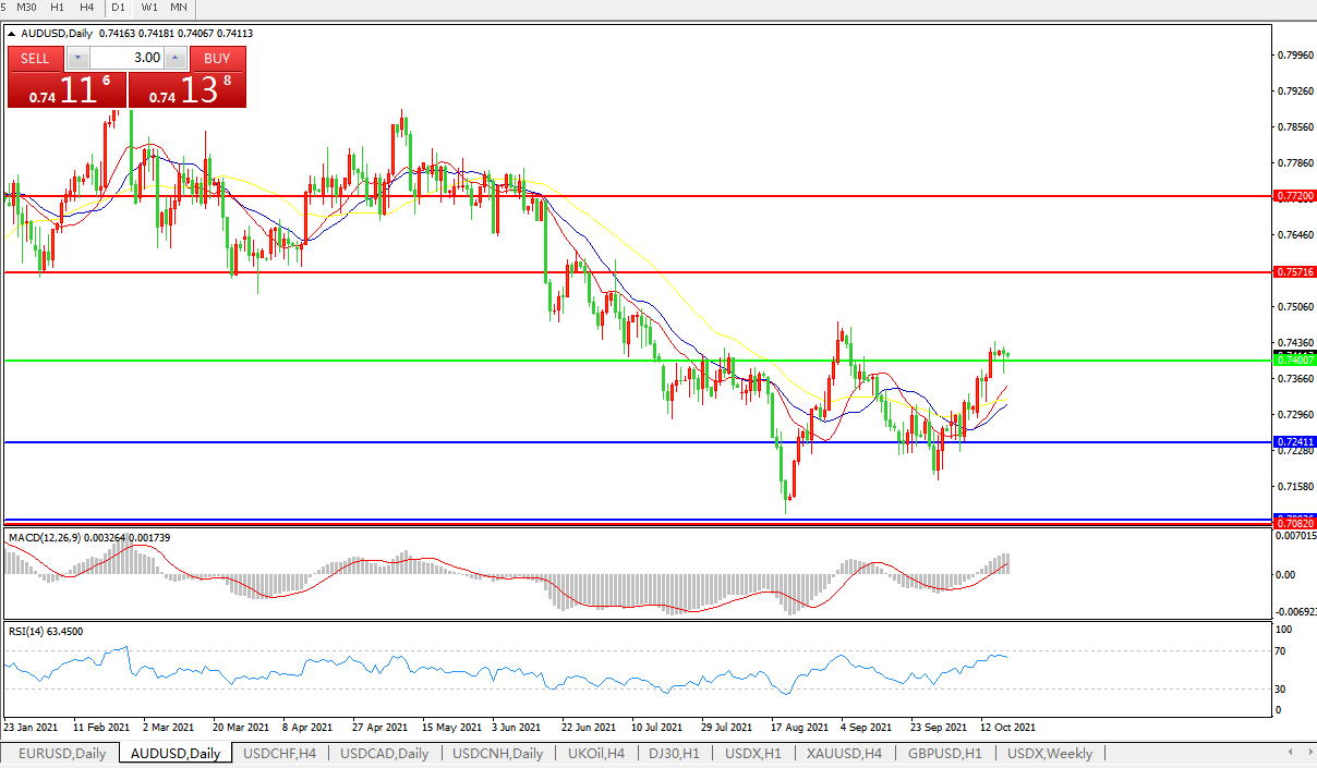 备选策略:0.7400上方看涨,目标0.7570、0.7720