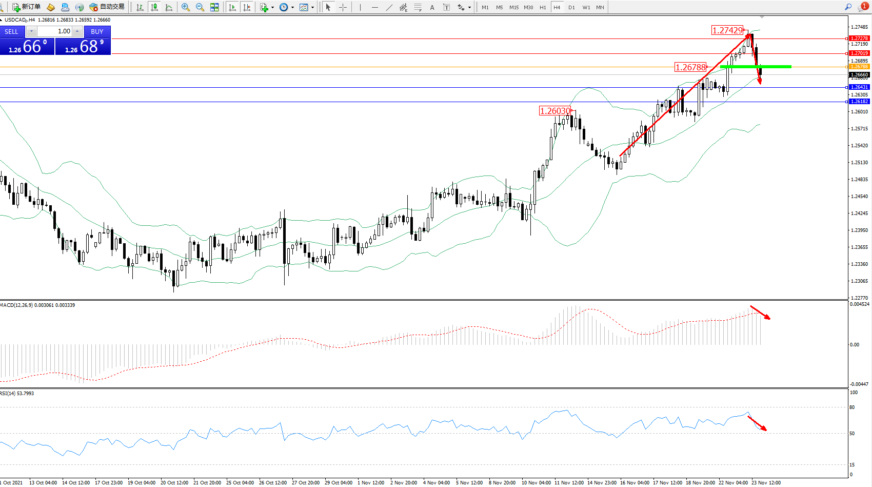 交易策略:1.26788下方看跌,目标1.26431、1.26182