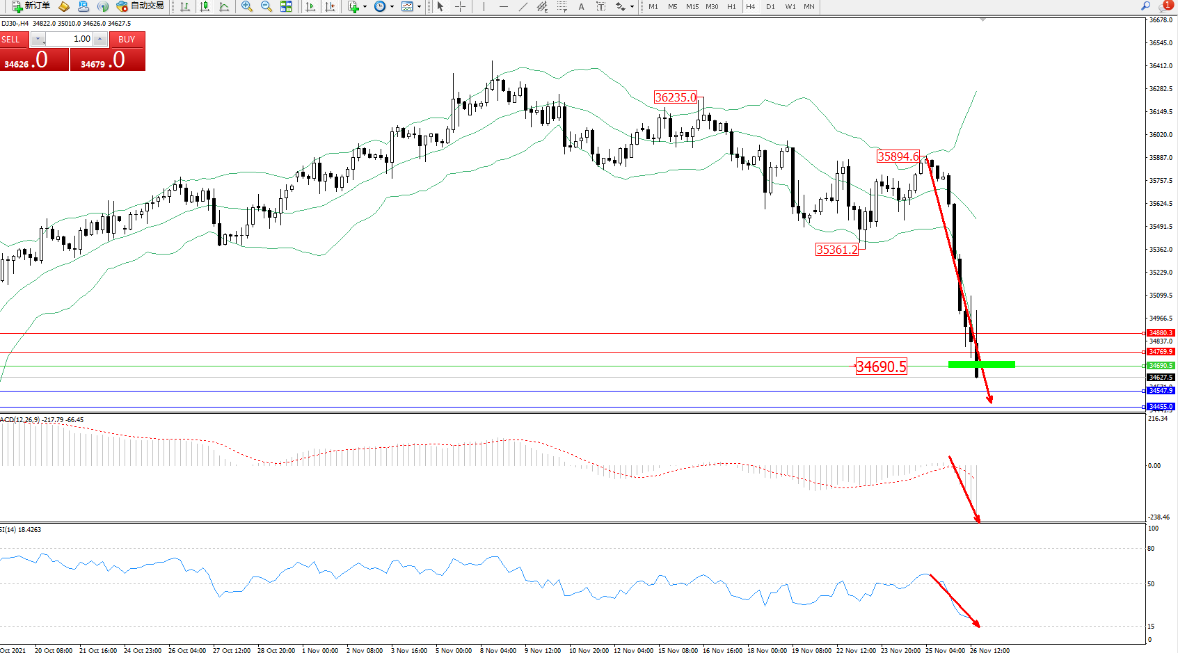 道琼斯指数11月26日(周五)收盘下跌905.04点,跌幅2.53%,报34899.34点;美股因感恩节假期提前收盘,道指初步骤跌约900点,美国股市在感恩节后下挫,追随全球市场跌势,投资者担心南非发现的新冠病毒变异株将引发新的疫情并破坏脆弱的经济复苏。周期性股和小盘股首当其冲,新的变种可能会打击经济复苏,但这次,各国央行将没有足够的余地来采取行动。美国收益率下降以及新毒株令美联储推迟收紧政策的可能性影响了美元的吸引力。