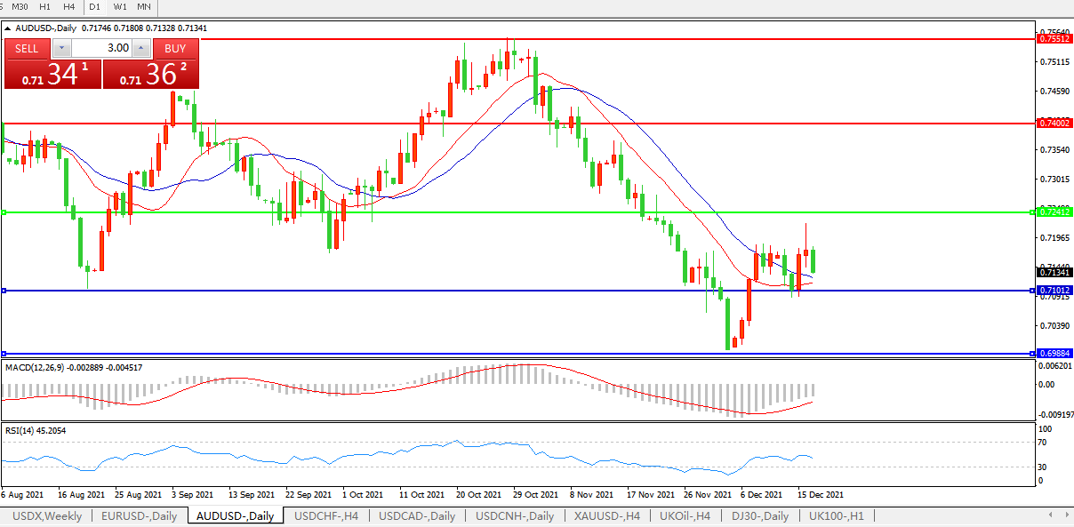 交易策略:0.7240下方看跌,目标0.7100、0.6980