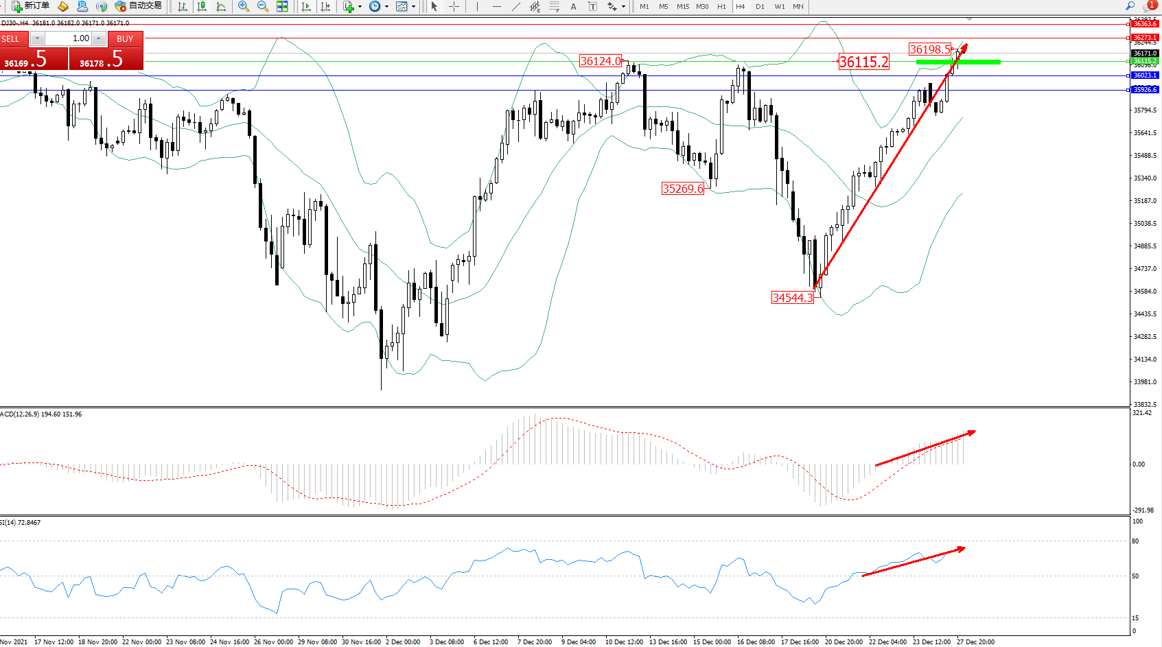 技术点评:多头兑延续布林带指标通道中上轨区间持续震荡上扬,高位抵达36198位置后开始整理,现阶段已然突破前期高位,且多头动力有继续攀升态势,布林带指标呈上行趋势走势态势良好,MACD指标处于多头区域维持震荡上扬中,RSI指标处于多头区域维持整理攀升中;